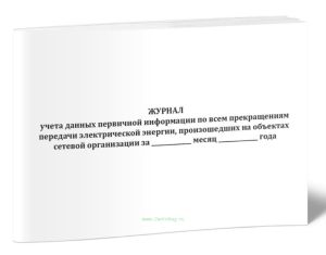 Форма журнала учета данных первичной информации по всем прекращениям передачи электрической энергии, произошедших на объектах сетевой организации соответствует Приложению 8 к Методическии указаниям по расчету уровня надежности и качества поставляемых товаров и оказываемых услуг для организации по управлению единой национальной (общероссийской) электрической сетью и территориальных сетевых организаций