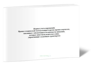Журнал учета нарушений, правил технической эксплуатации и других правил перевозок, связанных с обеспечением безопасности движения, которые допустили водители и лица, управляющие служебным транспортом соответствует Методическому пособию по курсу подготовки специалистов по безопасности дорожного движения на автомобильном транспорте.