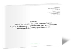 Журнал ведется медицинским работником со средним профессиональным образованием в кабинете (отделении) трансфузиологии медицинской организации, осуществляющей клиническое использование донорской крови и (или) ее компонентов, для обеспечения прослеживаемости данных о поступлении донорской крови и (или) ее компонентов из медицинской организации государственной системы здравоохранения, организации федеральных органов исполнительной власти, в которых федеральным законом предусмотрена военная и приравненная к ней служба, осуществляющей заготовку и хранение донорской крови и (или) ее компонентов, в кабинет (отделение), а также о выдаче донорской крови и (или) ее компонентов из кабинета (отделения) в структурное подразделение медицинской организации для осуществления трансфузий.
