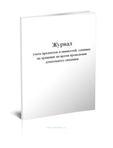 Журнал учета предметов и ценностей, сданных на хранение на время проведения длительного свидания соответствует Приложению №24 к Приказу Минюста России от 23.06.2005 N 95 "Об утверждении Инструкции о надзоре за осужденными, содержащимися в воспитательных колониях Федеральной службы исполнения наказаний"