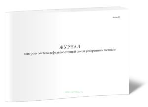 Форма журнала контроля состава асфальтобетонной смеси ускоренным методом соответствует Приложению 1 (Форма 12) к "Пособию по строительству асфальтобетонных покрытий и оснований автомобильных дорог и аэродромов (к СНиП 3.06.03-85 и СНиП 3.06.06-88)".