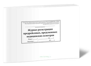 Форма журнала регистрации предрейсовых, предсменных медицинских осмотров утверждена Приказом Министерства здравоохранения Российской Федерации (Минздрав России) от 15 декабря 2014 г. N 835н г. Москва "Об утверждении Порядка проведения предсменных, предрейсовых и послесменных, послерейсовых медицинских осмотров", вводится с 1 мая 2015 г. и действует в настоящее время.