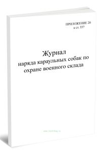 Форма Журнала наряда караульных собак по охране военного склада приведена в Приложении к книге "Наставление по дрессировке и применению военных собак "
