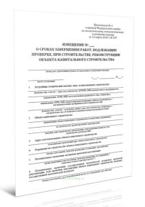 Извещение о сроках завершения работ, подлежащих проверке, при строительстве, реконструкции объекта капитального строительства