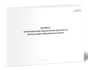 Форма журнала испытаний при определении прочности контрольных образцов на сжатие соответствует Приложению В к ГОСТ 10180-2012. Бетоны. Методы определения прочности по контрольным образцам.