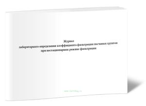 Форма журнала лабораторного определения коэффициента фильтрации песчаных грунтов при нестационарном режиме фильтрации соответствует Приложению Б к ГОСТ 25584-2016 Грунты. Методы лабораторного определения коэффициента фильтрации