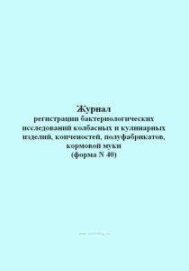 Журнал регистрации бактериологических исследований колбасных и кулинарных изделий, копченостей, полуфабрикатов, кормовой муки (Форма N 40)