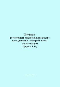 Графы журнала регистрации бактериологического исследования консервов после стерилизации (форма N 41):
