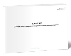 Форма журнала регистрации газоопасных работ без нарядов-допусков соответствует приложению Б.2 к ГОСТу 34741-2021 Системы газораспределительные. Требования к эксплуатации сетей газораспределения природного газа.