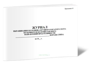 Форма журнала выращивания молодняка крупного рогатого скота молочного и молочно-мясного направлений продуктивности соответствует Приложению N 16 к Правилам ведения учета в племенном скотоводстве молочного и молочно-мясного направлений продуктивности.
