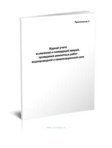 Так же в продаже есть журнал учета выявлений и ликвидаций аварий, проведения ремонтных работ водопроводной и канализационной сети с другими графами